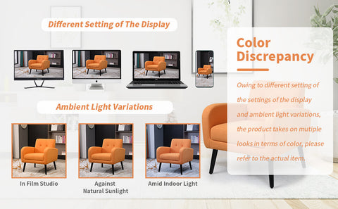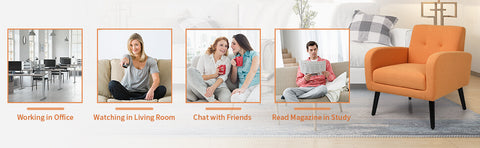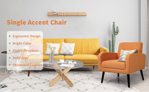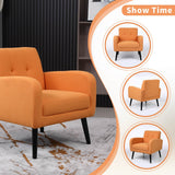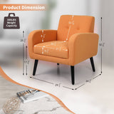 Tufted Upholstered Modern Linen Fabric Accent Chair Comfy Reading Orange