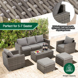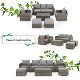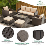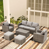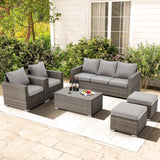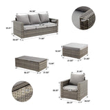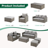 6 Pieces Wicker Patio Furniture Sets with Coffee Table, Outdoor Set Furniture Gray