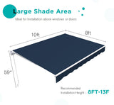 YODOLLA 10'×8' Manual Retractable Awning Sun Shade Patio Awning Cover Outdoor Patio Canopy Sunsetter Deck Awnings with Manual Crank Handle, Dark Blue