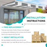- INSTALLATION AND CUSTOMER SERVICE -The patio retractable canopy can be installed on a concrete, solid brick wall and even on a wooden wall. Assembly needed, manual and hardware included, pls let us know if you have any problem.