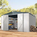 YODOLLA 10 x 12 ft. Outdoor Metal Storage Shed with Sliding Roof & Lockable Door,White
