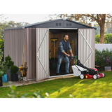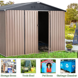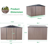 YODOLLA 10' x 8' Outdoor Metal Storage Shed in Brown Patio Storage Building with Lockable Door for Garden, Backyard