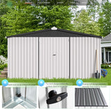 YODOLLA 12 x 12 ft. Outdoor Metal Storage Shed with Sliding Roof & Lockable Door in White
