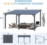 YODOLLA 12' x 14' Hardtop Gazebo Outdoor Aluminum Pergola For Garden, Patio, Backyard-Dark Grey