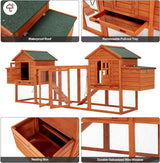 - 🐣【STURDY MATERIAL】 Constructed by premium natural fir wood and painted with waterproof and non-toxic varnish, the original wood is firm and natural for your beloved pet. The rabbit hutch is waterproof, which offers long-lasting lifespan to provide a warm house for pet all the time.