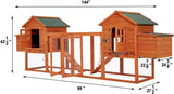 - 🐣【LARGE LIVING SPACE】The large size of the chicken coops is divided into two spaces for the main house and the running cage. The chicken wire fenced enclosure that allows your animals plenty of room to move around without the fear of predators. Overall Chicken house. Dimensions: 123” L x 27.5” W x 42.5” H.