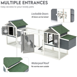 • 🐣【STURDY MATERIAL】 Constructed by premium natural fir wood and painted with waterproof and non-toxic varnish, the original wood is firm and natural for your beloved pet. The rabbit hutch is waterproof, which offers long-lasting lifespan to provide a warm house for pet all the time.