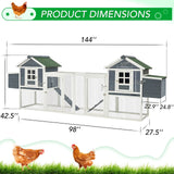 YODOLLA 123“ Large Wooden Chicken Coop with Run Wooden Hutch Poultry Cage Hen House with Nesting Boxes in Gray