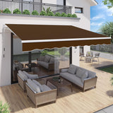 YODOLLA 13'×9.8' Manual Retractable Awning Sun Shade Patio Awning Cover Outdoor Patio Canopy Sunsetter Deck Awnings with Manual Crank Handle, Brown