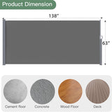 YODOLLA 138"x 63" Outdoor Retractable Side Awning, Folding Privacy Screen Waterproof Patio Awning, 180g Premium Polyester Fabric Room Divider for Patio, Garden and Terrace, Grey