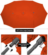 YODOLLA 15 Ft Patio Double Sided Umbrella Large Outdoor Umbrella - Orange