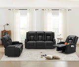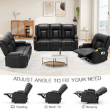 YODOLLA 3 Pieces Leather Recliner Sofa Set with Swivel Massage Chair, Modern Manual Control Couch Set Overstuffed Reclining Sofa Home Theater Seat RV Sofa Set w/Side Pockets&Cup Holders, Black