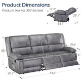 YODOLLA 3 Seat Leather Recliner Sofa with Massage Heated Function, Home Theater Seating Chair in Gray