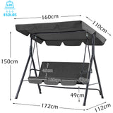 YODOLLA 3-Seat Outdoor Steel Porch Swing with Canopy, Swing Glider-Gray, Free Standing Porch Swing