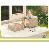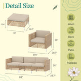 YODOLLA 5-Piece Patio Furniture Set, Boho Style Rattan Wicker 3-Seater Sofa Couch & Single Sofa Couch with Table In Beige