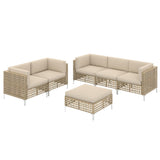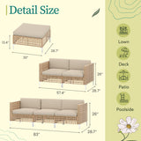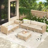 YODOLLA 6-Piece Patio Furniture Set, Boho Style Rattan Wicker 3-Seater Sofa Couch & Loveseat with Coffee Table In Beige