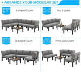 YODOLLA 7 piece Outdoor Patio furniture Set Clearance Metal Patio Sectional Sofa Set on sale with Grey Cushions and 30" Fire Pit Table