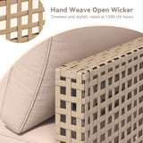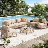YODOLLA 7-Piece Patio Furniture Set with Tea Table, Rattan Wicker Outdoor Sectional Furniture Sofa Conversation Set, Light Brown Rattan&Beige Cushions