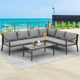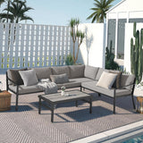YODOLLA 7 Pieces Aluminum Patio Furniture Set with Waterproof Cover Patio Conversation Set For Outdoor with Grey Cushions