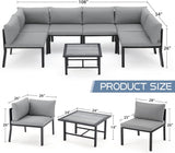 YODOLLA 7 Pieces Metal Outdoor Conversation Sets with Cushions, Gray