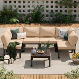 YODOLLA 7 Pieces Outdoor Metal Furniture Sets Patio Conversation Set with Coffee Table and 30" Fire Pit Table, Beige