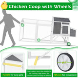 YODOLLA 95" Chicken Coop with Wheels, Hen House Wooden Chicken Hutch Poultry Cage w/Run, Nesting Boxes, Ramps, Removable Tray for Barkyard