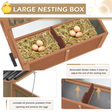 • 【COMMODIOUS & COSY】 Overall Chicken house dimension: 95” L x 31.5” W x 47.3” H, Main House Area: 9ft², Ground Activity Area:20.8ft².Otherwise, our chicken coup has large nesting boxes for hen to relax&lay and also a removable tray convenient for daily cleaning.