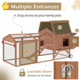 • 【SAFE & FIRM】Our large chicken coop is safe enough for poultry, as it is made of premium natural fir wood and painted with waterproof and non-toxic varnish. The support bar across the run cage can avoid deformation after long time use.