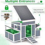 - Safe Material -- The large chicken coop is constructed by premium natural fir wood and painted with non-toxic varnish, the original wood is firm and safe for your beloved pet.