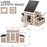 • Waterproof Roof -- The roof of the wooden chicken coop is made of PVC board with groove design, which is better than ordinary asphalt roof in terms of water resistance as well as drainage, making your chickens feel comfortable even in bad weather