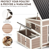 • Safe Material -- The large chicken coop is constructed by premium natural fir wood and painted with non-toxic varnish, the original wood is firm and safe for your beloved pet.