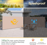 YODOLLA Double Retractable Side Awning, 236" x 63"Double Side Awning, Waterproof Folding Outdoor Privacy Screen, 280g Premium Polyester Fabric Room Divider for Patio, Garden and Terrace, Beige