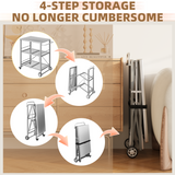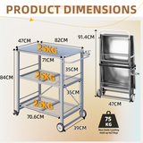 YODOLLA Foldable Outdoor Grill Cart 3 Tiers Stainless Steel Rolling Cart with Wheels Metal Utility Storage Trolley,Silver