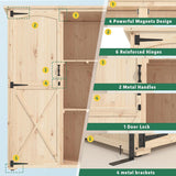YODOLLA Large Outdoor Wooden Storage Shed with Waterproof Roof, Featuring a Tool Shed with 2 Removable Shelves and Double Lockable Doors in Natural Wood