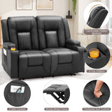 YODOLLA Manual Reclining Loveseat with Cup Holders&Side Pockets, PU Leather Double Recliner Loveseat Home Theater Seating-Black