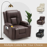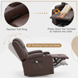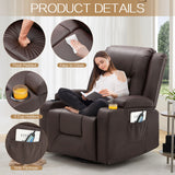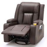 YODOLLA Massage Manual Recliner Chair with Heat and Vibration Massage, PU Leather Swivel Rocker Recliner Chair for Adults with 2 Cup Holders, Remote Control-Brown