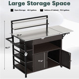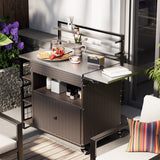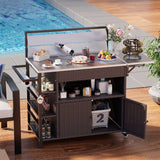 YODOLLA Outdoor Bar Cart with Rattan Storage Cabinet, Outdoor Prep Table Grill Cart with Rolling Wheels, Dark Brown