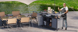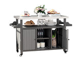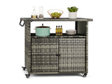 YODOLLA Outdoor Bar Cart with Rattan Storage Cabinet, Outdoor Prep Table Grill Cart with Rolling Wheels, Gray