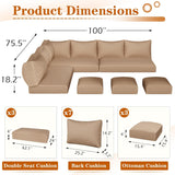 YODOLLA Outdoor Cushions, 4 inch Patio Cushions for Outdoor Furniture, Replacement Cushions Fits 7-Seats Sectional Rattan Conversation Set, Splashproof, Memory Foam Cushions and Covers (Beige)