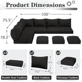 YODOLLA Outdoor Cushions, 4 inch Patio Cushions for Outdoor Furniture, Replacement Cushions Fits 7-Seats Sectional Rattan Conversation Set, Splashproof, Memory Foam Cushions and Covers (Black)