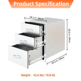 YODOLLA Outdoor Kitchen Drawers Stainless Steel 18.1"Wx23.2"Hx23.2"D, 3-Layers Drawers with Stainless Steel Handles for Outdoor Kitchen or BBQ Island