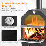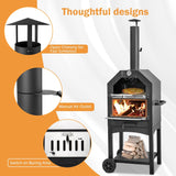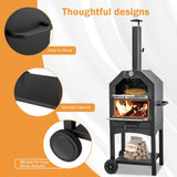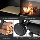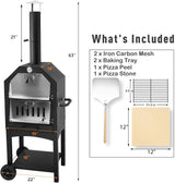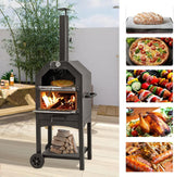 YODOLLA Outdoor Pizza Oven with Waterproof Cover Portable Wood Fired Pizza Oven with Side Handles &Two Wheels Grill Rack for Backyard