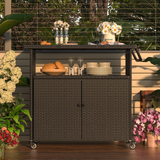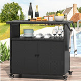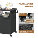 YODOLLA Outdoor Wicker Bar Table with Wheels & Shelf Patio Serving Table Outdoor Storage Cabinet, Black