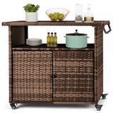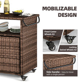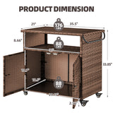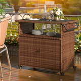 YODOLLA Outdoor Wicker Bar Table with Wheels & Shelf Patio Serving Table Outdoor Storage Cabinet, Brown