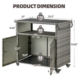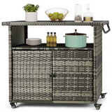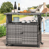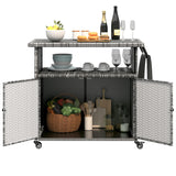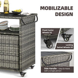 YODOLLA Outdoor Wicker Bar Table with Wheels & Shelf Patio Serving Table Outdoor Storage Cabinet, Gray