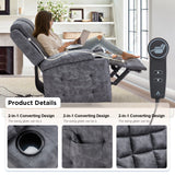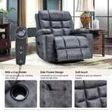 YODOLLA Oversized Nursery Electric Recliner Chair, Power Sofa with USB & Cup Holders, Breathable Leather Fabric, Home Theater Seating in Bronze Dark Grey