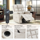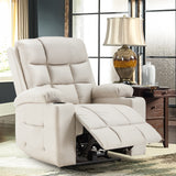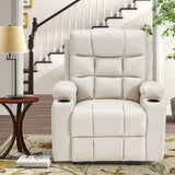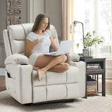 YODOLLA Oversized Nursery Electric Recliner Chair, Power Sofa with USB & Cup Holders, Breathable Leather Fabric, Home Theater Seating in White