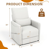 Versatile: This modern recliner features a clean, minimalist design that seamlessly fits into any space. Ideal for casual conversations in the living room, relaxing in the bedroom, reading in the study, or working in the office, it offers both style and functionality in any setting