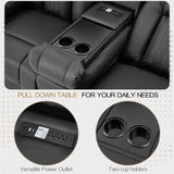 - 3-in-1 Design of Console -- The middle seat of this reclining sofa that can hold up to 350 pounds; the back of the middle seat pulls down to become a console that includes 2 cup holders and a hidden charging station (2 power outlets as well as USB and type C); and if you're feeling tired, you can turn on bluetooth speaker and relax from the day.