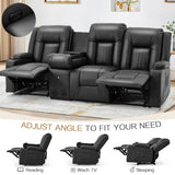 YODOLLA Reclining Sofa with Console&Bluetooth Speakers, Manual RV Recliner Couch with USB Ports&4 Cup Holders, 2 Side Pockets Recliners on Clearance Home Theater Seating, Fuax Leather, Black